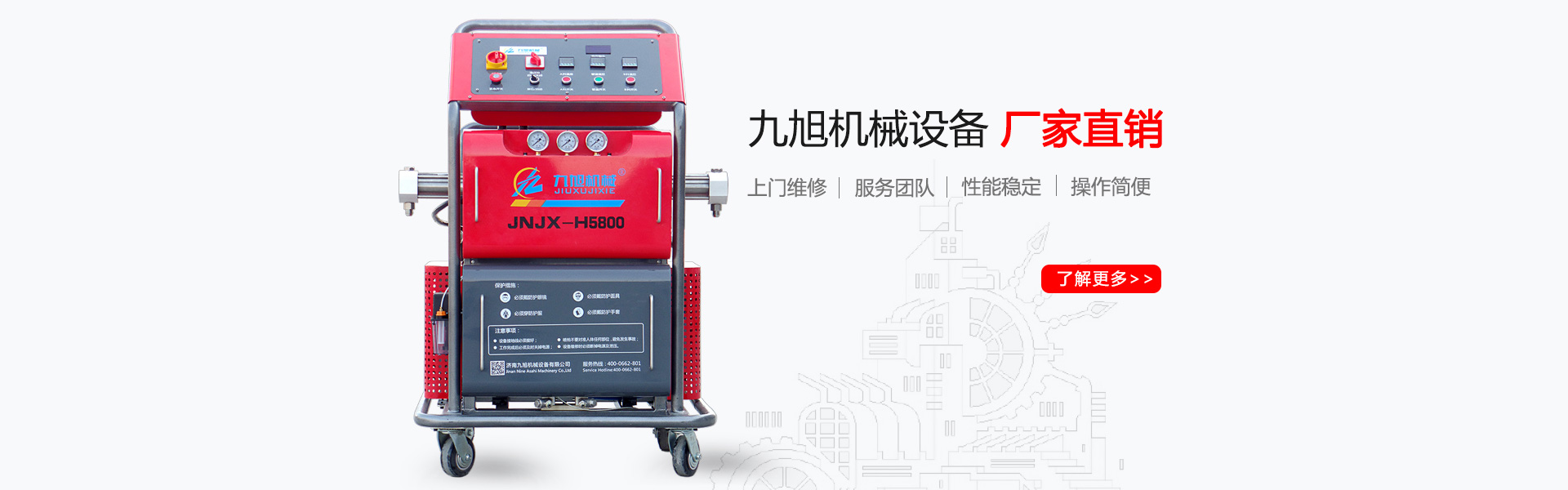 山東九旭機械科技有限公司歷經十幾年的發展,已成長為聚氨酯設備行業頗具實力的設備制造廠家之一。企業主要產品:聚氨酯噴涂機、聚氨酯發泡機、聚氨酯澆注機、聚脲噴涂機等,關于設備配件(聚氨酯高壓噴槍、槍嘴、加熱管道、料塊、摩擦副、增壓泵、混合式、提料泵等)也是堅持最好的質量服務用戶,并承接:外墻保溫、冷庫保溫發泡等工程...